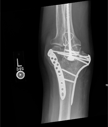 ORIF yapısının bütünlüğünü değerlendirmek için görüntüleme esastır. Radyografiler lateral ve hafif modifiye anteroposterior (AP) görünümlerle yapılır. AP görünümü, olekranonun yoldan çekilmesine izin vermek için dirseğin yaklaşık 40 dereceye kadar fleksiyonunu içerir ve distal humerusun daha iyi görüntülenmesini sağlar. 6 Bilgisayarlı tomografi (BT) taramalarının, özellikle eklem tutulumu olduğunda 3D rekonstrüksiyonların kullanımına artan bir ilgi vardır. 11