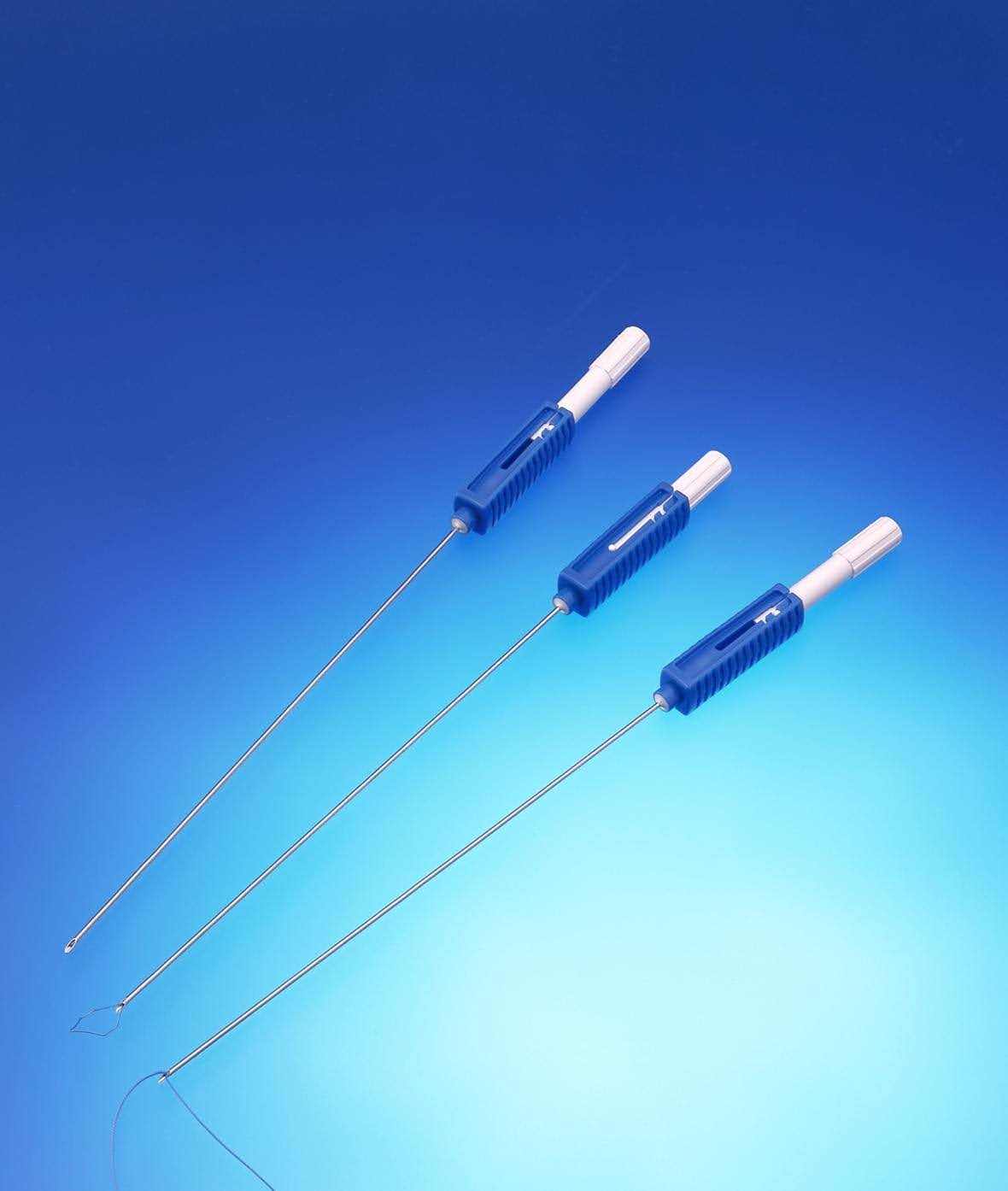 - Lapa-Her-Closure (Hakko Co., Ltd. Medical Device Division, Tokio, Japón): un portaligaduras que consiste en un tubo exterior (aguja roma de 19 G) con filo cortante, por el cual una varilla (aguja de 17 G) se desliza en su punta con un alambre de lazo que puede atrapar y liberar materiales de sutura.
